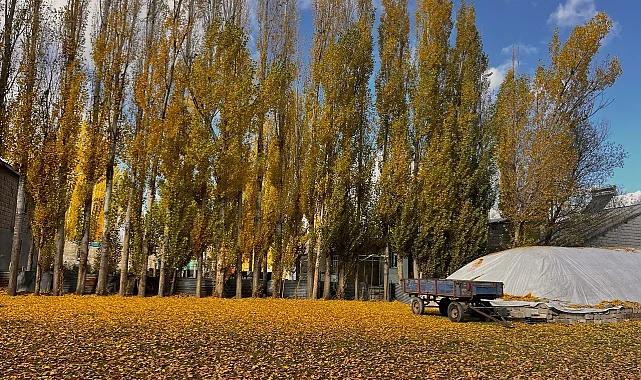 Ağrı'da sonbaharın son günlerine doğru ağaçlardan düşen ve toprağı örten yapraklar manzarasıyla göz kamaştırdı.