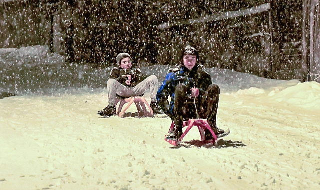 Kar kalınlığının 20 santimetreyi bulduğu ilçede çocuklar kar topu oynadı. İnönü Mahallesi'nde bir araya gelen çocuklar yokuşlardan kızaklarla kaydı.
