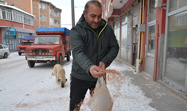Sarıkamış’ta esnaflık yapan vatandaşlar aldıkları yemler ile güvercinleri besleyerek bu zor günlerde hayvanlara yardımcı oluyor.