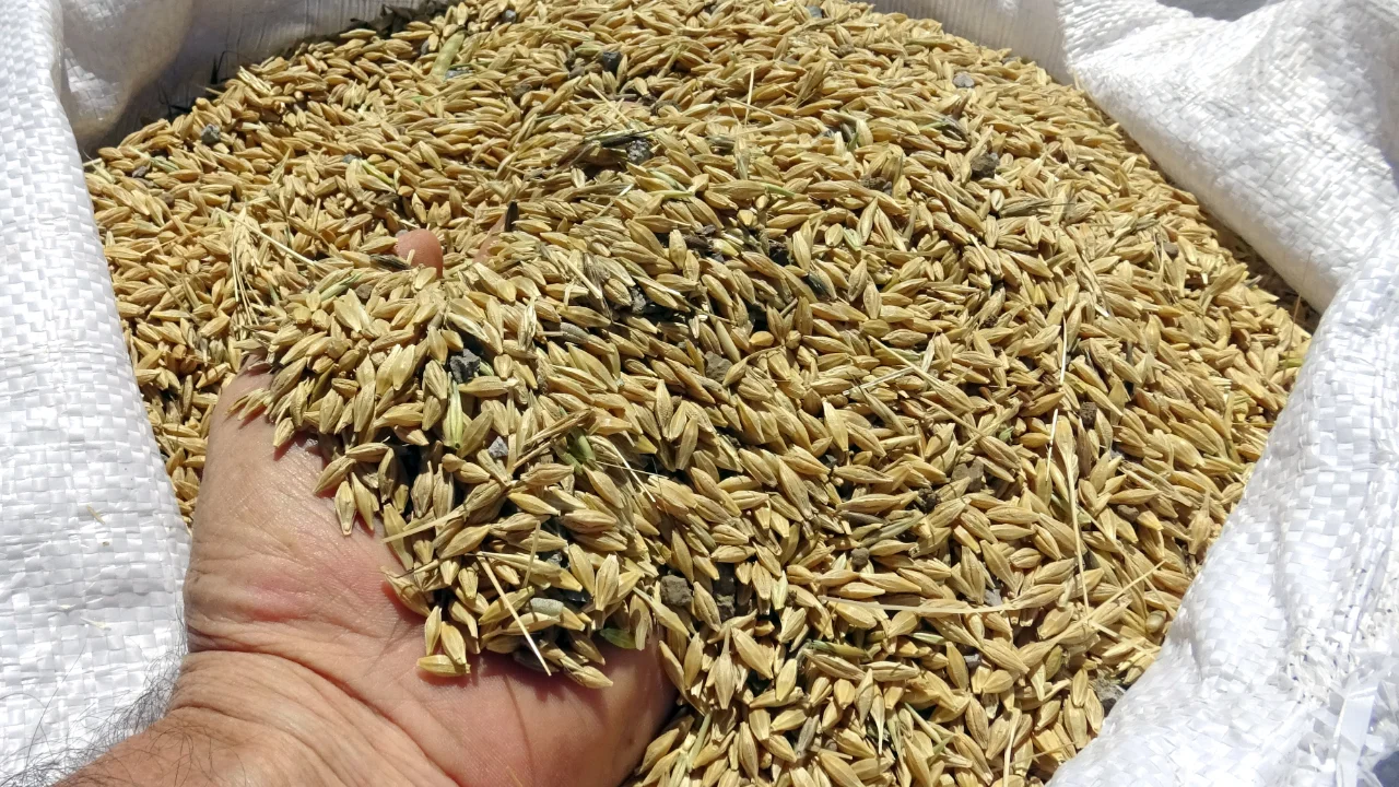 Çiftçilerden Olgay Ejder, AA muhabirine, karın geç eridiği topraklarda arpa ve yulaf hasadına başladıklarını söyledi.