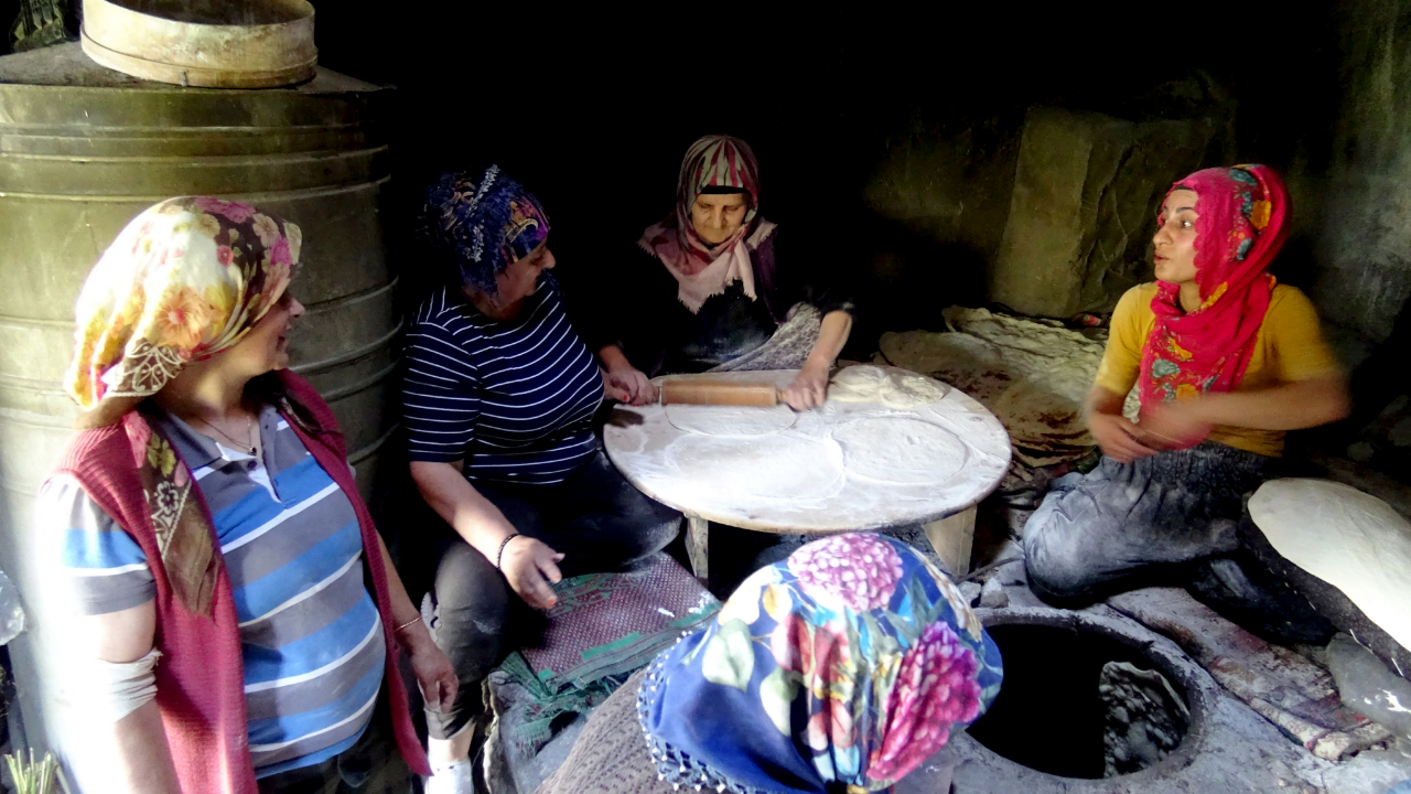 Yaz sıcaklarında da tandırda ekmek pişirmeye devam eden yöre kadınları, ateş başında bunaltıcı ortamda yoğun mesai yapıyor.