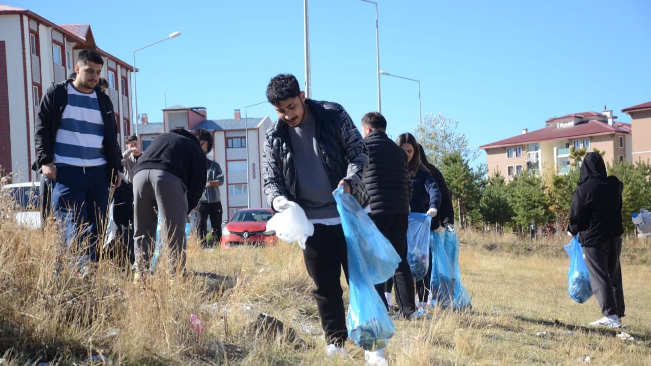 Kars’ın Sarıkamış ilçesinde üniversite öğrencileri "Temiz çevre sağlıklı nesil” projesi kapsamında 100 poşet çöp topladı.