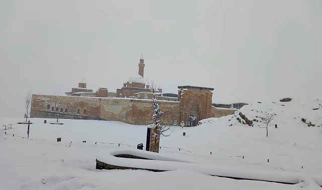 Doğu Anadolu Bölgesi'nin incisi tarihi İshak Paşa Sarayı beyaza büründü.