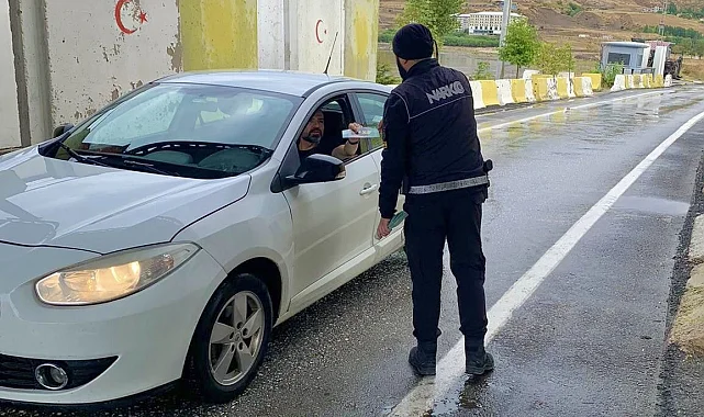 Emniyet güçleri, Tatvan ilçesinde bulunan polis kontrol noktasında UYUMA uygulaması yaparak sürücülere el broşürü dağıttı. NarkoNokta etkinliği çerçevesinde emniyet güçleri el broşürünü sürücülere dağıttıktan sonra bilgilendirmelerde bulunarak uyuşturucu ile mücadelede farkındalık oluşturdu.