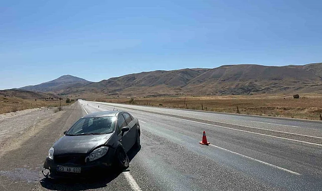 Malatya'nın Doğanşehir ilçesinde tekeri patlayan otomobil su tahliye kanalına düştü.