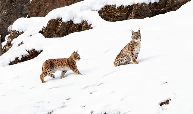 Tunceli'de Munzur Vadisi Milli Parkı'nda, nesli tehdit atında olduğu için Dünya Doğa ve Doğal Kaynakları Koruma Birliği (IUCN) tarafından kırmızı listede yer alan bir anne ve 2 yavru vaşak görüntülendi.