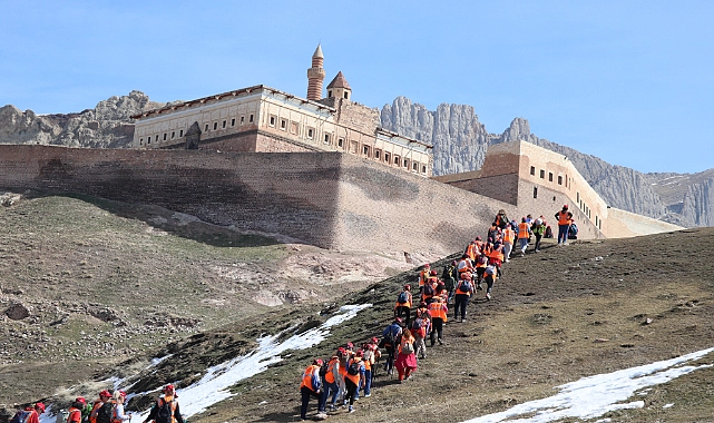 Yurdun farklı illerinden ilçeye gelen kadınlar, dernek başkanı Ahmet Ertuğrul'un otelinde konaklayıp kilometrelerce yol yürüdükten sonra İshak Paşa Sarayı'nı gezdi.
