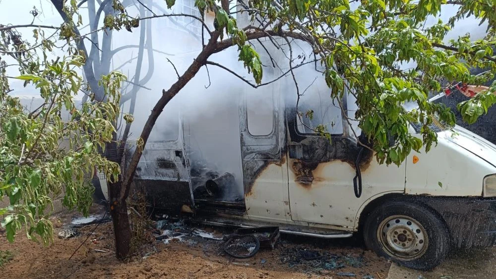 Van'ın Tuşba ilçesinde park halindeki minibüs yanarak kullanılamaz hale geldi.