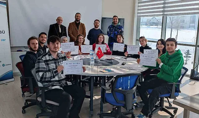 Katılımcılara sertifikaları Doç. Dr. Mehmet Enes Arslan, Dr. Öğr. Üyesi Cebrail Gençoğlu, Dr. Öğr. Üyesi Murat Ceylan ve İş Kulübü Lideri Ali Haydar Kolik tarafından takdim edildi.