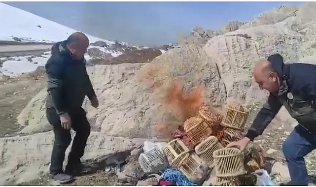 DKMP ekipleri, il genelinde farklı tarihlerde kafes avcılarından ele geçirilen çok sayıda tuzaklama malzemesi ve kafesinin yakılarak imha edildiği belirtti.
