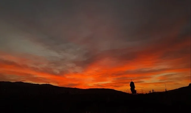 Van'ın Özalp ilçesinde görünen kuzey ışıkları gökyüzünü adeta kırmızıya boyadı.