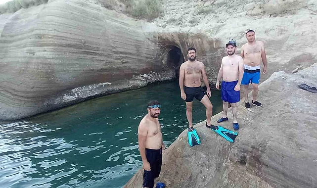 Geçtiğimiz günlerde dünyanın en büyük ikinci krateri olan, Tatvan ilçesinin 2 bin 247 rakımındaki Nemrut Krater Gölü'ne tüpsüz dalış gerçekleştiren Venuma Dağcılık ve Su Altı Sporları Topluluğu üyeleri, bölgenin doğal güzelliklerine dikkat etmek için bu kez de Van Gölü'nün keşfedilmeyi bekleyen koylarına dalış gerçekleştirdi. Van Gölü'nün Tatvan ilçe sınırında yer alan koyları keşfe çıkan grup üyeleri, doğal güzelliğiyle kendine hayran bırakan Adabağ köyü sahilindeki koya dalış yaptı. Grup üyelerinin dalışlar esnasında su altı ve mağarayı andıran koyun içinden aldıkları görüntüler ise doğal güzelliği ortaya çıkardı. Derinliklerinde birçok kuş yuvasının yer aldığı koy, buz mağarasını andıran görüntüsüyle kendine hayran bıraktı.