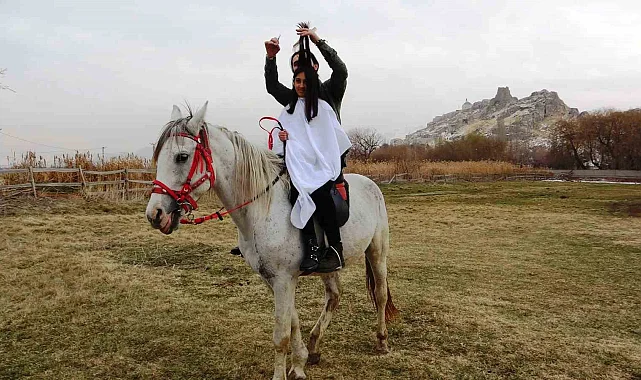 Vanlı bay ve bayan kuaförü Onur Ezel, ödüllerle geçirdiği 2024 yılını güzel bir finalle kapatmak için Van Kalesi önünde at sırtında saç kesti.