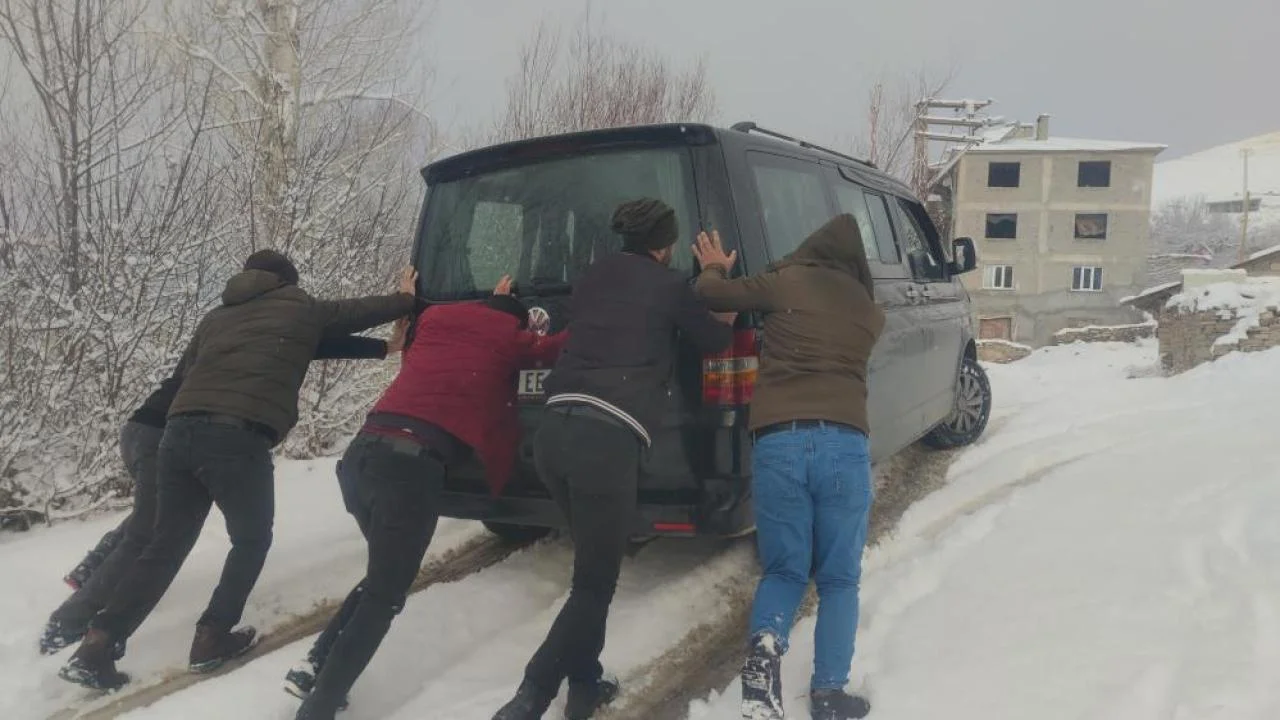 Van'da dün akşam etkili olan kar yağışıyla birlikte 17 yerleşim yerinin yolu kapanırken araçlar yolda kaldı.
