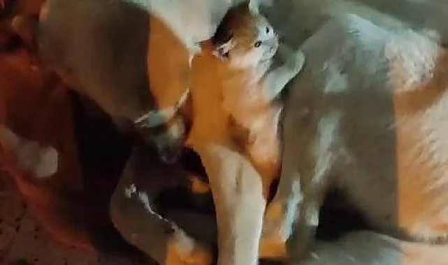 Tunceli'nin Pülümür ilçesinde üşüyen bir yavru kedi, ısınmak için en olmadık yeri tercih etti. Eşikte kıvrılıp uyumayı bekleyen köpeğin yanına yavru kedi yanaştı. Bir süre köpeğin üzerinde gezinen kedi kendine yer olarak köpeğin koynunu seçti. Önce kediye karşı duyarsız kalan köpek, kedinin ısrarlı sırnaşması sonrası yavru kediyi koynuna aldı.