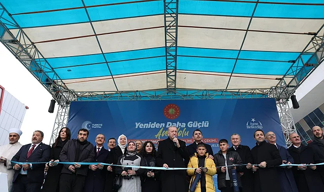 Cumhurbaşkanı ve AK Parti Genel Başkanı Recep Tayyip Erdoğan, Merkez Spor Salonu önünde düzenlenen deprem konutları kura çekimi ve anahtar teslimi töreninin ardından Yeşilyurt Belediyesi Yeni Hizmet Binası'nın da resmi açılışını yaptı.