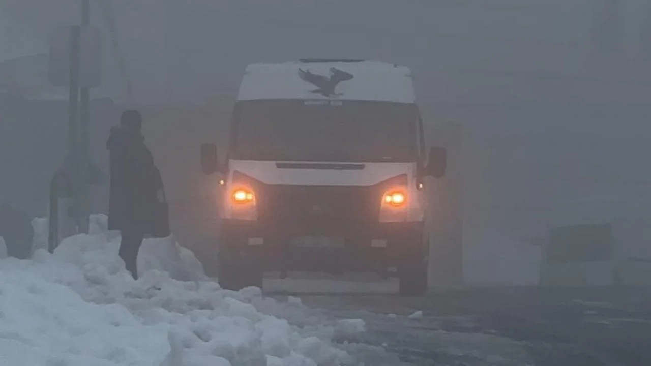Hakkari'nin Yüksekova ilçesinde etkili olan yoğun sis nedeniyle adeta göz gözü görmüyor.
