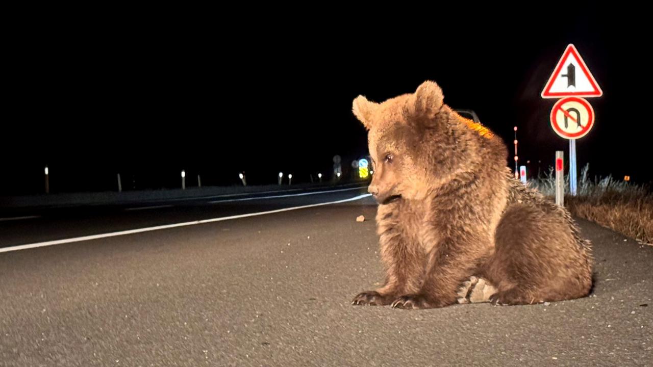 Kars'ın Sarıkamış ilçesinde yol kenarında bitkin bulunan bozayı yavrusu tedavi altına alındı.