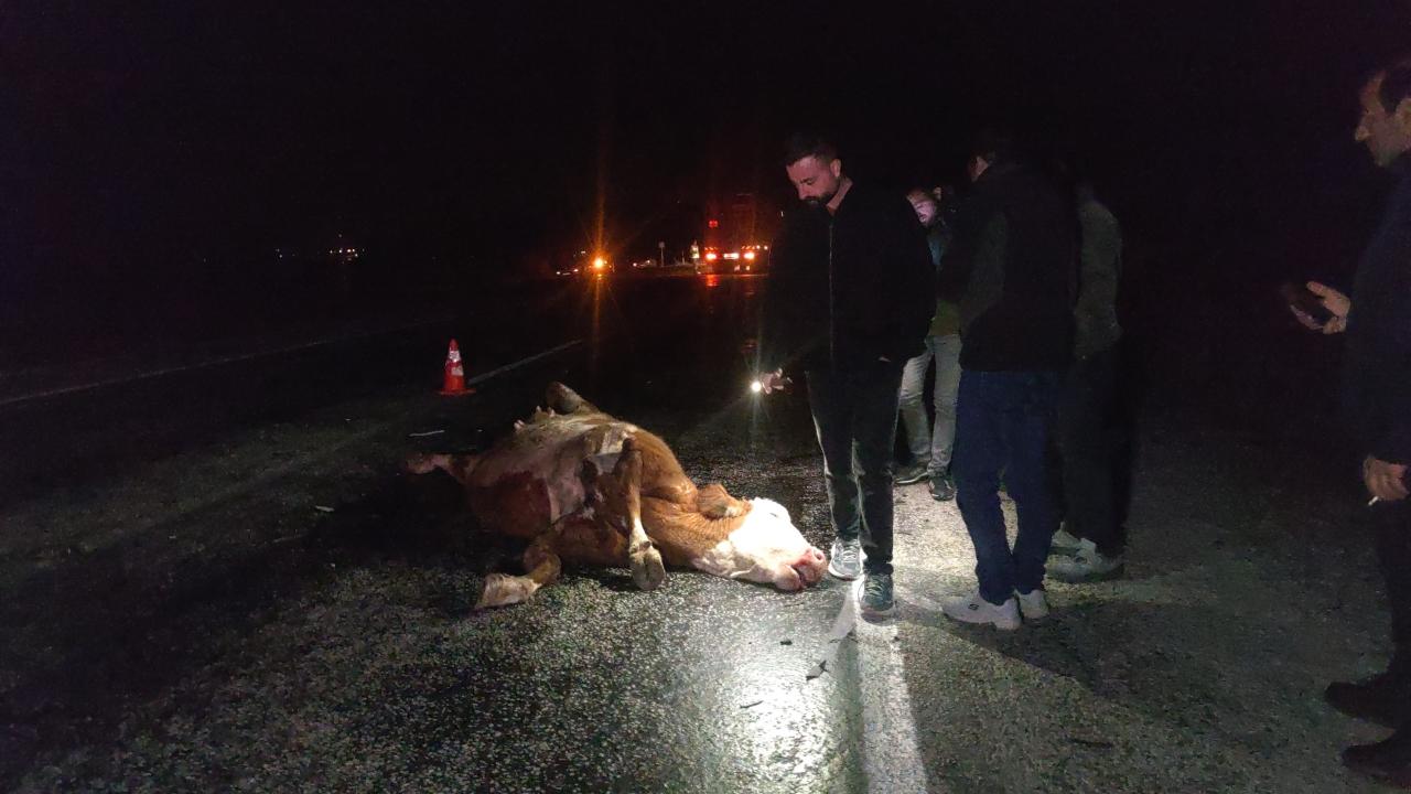 Jandarma ekipleri kaza yerinde güvenlik önlemleri alırken, telef olan inek ve kazaya karışan araçlar yoldan kaldırıldı. Karayolunda bir süre tek şeritten sağlanan trafik, ekiplerin çalışmasının ardından normale döndü.