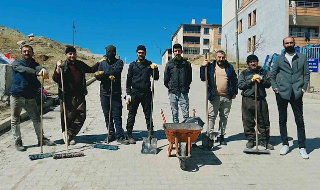 Hakkari'nin Yüksekova ilçesinde bir araya gelen 10 kişilik mahalle sakini, havanın sıcak olmasını fırsat bilerek mıntıka temizliği yaptı.