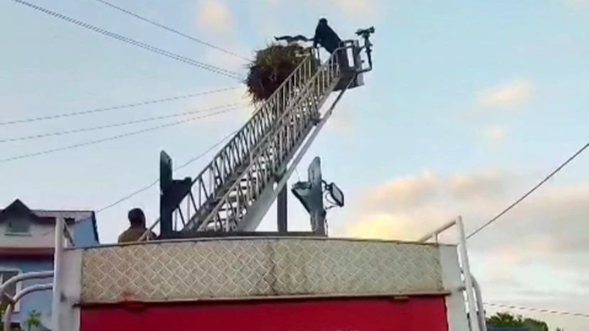 İtfaiye ekipleri yavru leyleği dikkatle alarak yangın merdiveni yardımıyla yuvasına bıraktı. Kurtarma operasyonunu ilgiyle izleyen köylüler, yavrunun yeniden yuvasına kavuştuğu anı alkışlarla karşıladı.