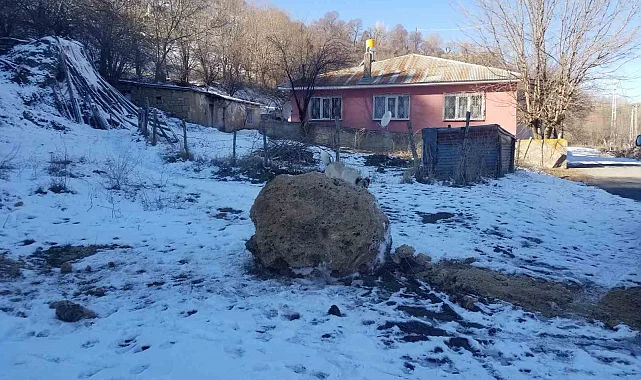 Yuvarlanan kaya parçalarının evleri teğet geçmesi büyük şans olarak değerlendirildi.